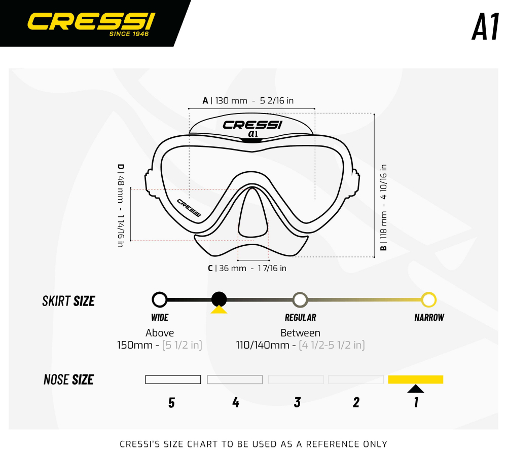 Diving mask Cressi A1 Black/Yellow ANTI FOG - glass