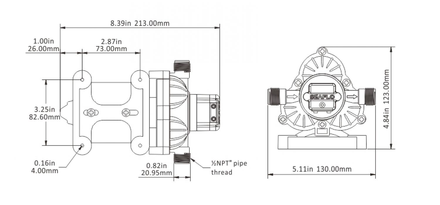 Мембранный насос для пресной воды серии 33 12 В 11,6 л / мин 3,1 бар 45psi
