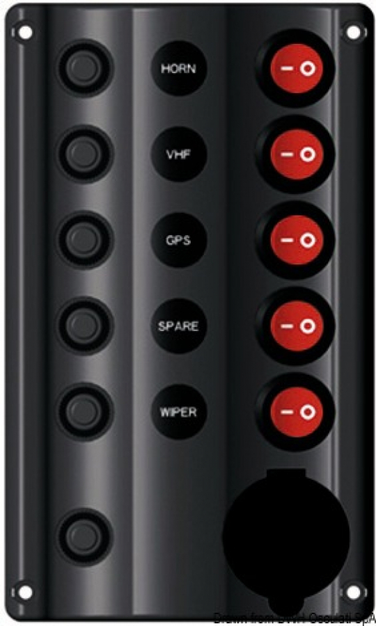 Панель переключателей 5 переключателей + розетка 12В 5Ax2+10Ax2+15Ax2 180x107mm IP54